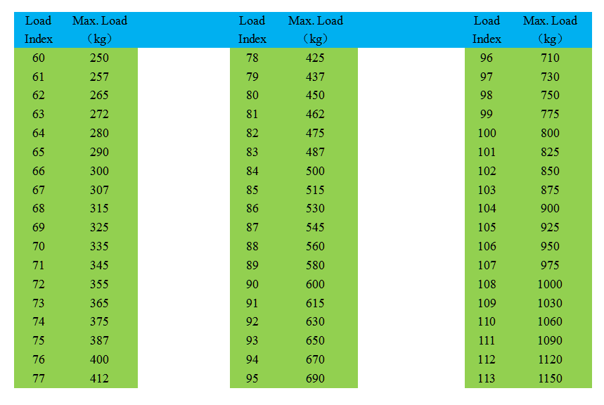 The maximum load ability of tire can bear under specified situation.